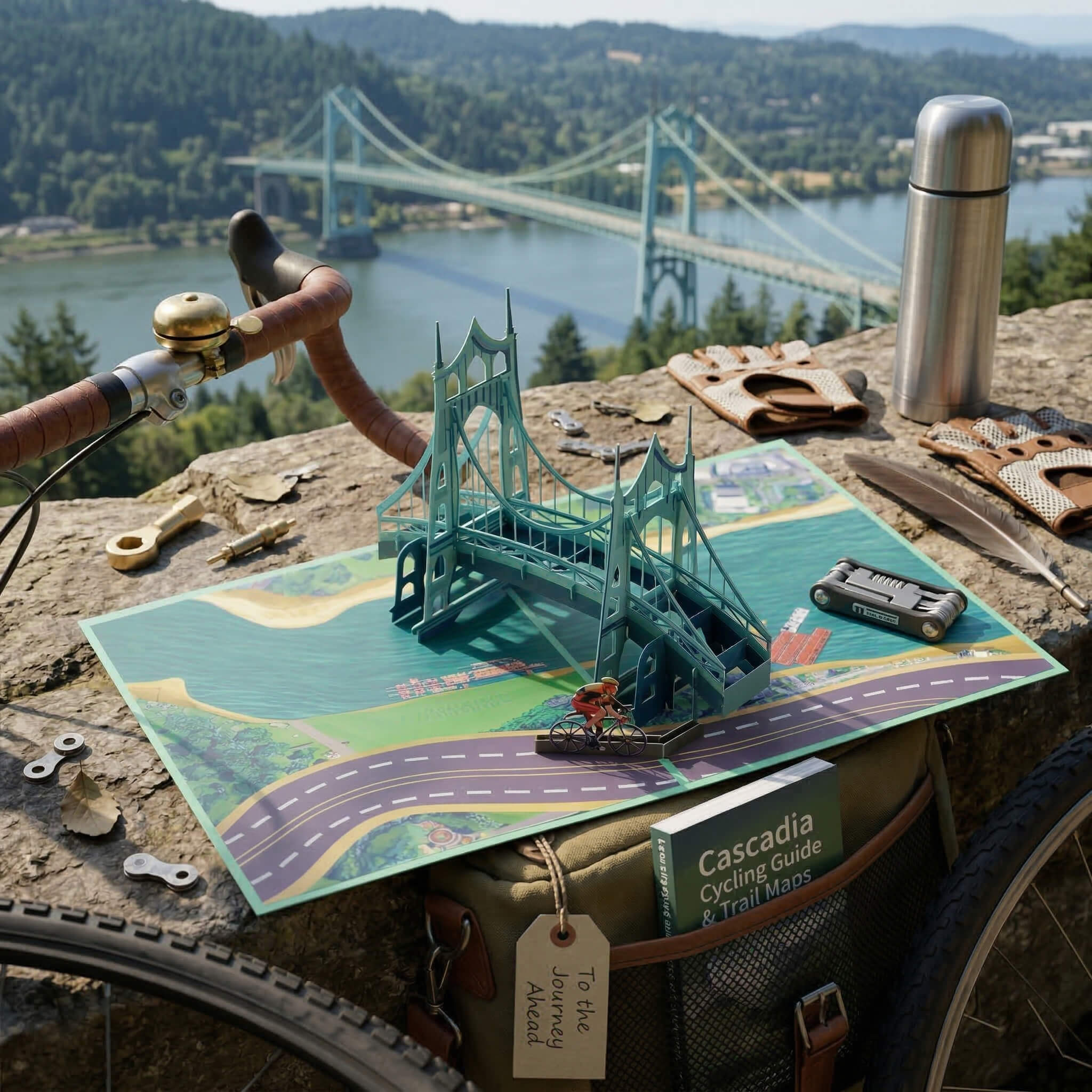 Tilikum Bridge Portland Bike 3D pop-up card